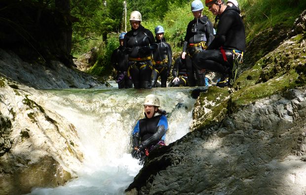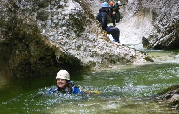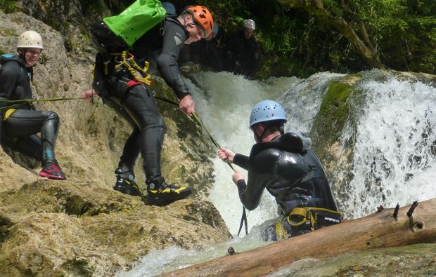 Zunächst wirst Du von einem geprüften Guide begrüßt, der Dir in einem ersten Schritt alles Wissenswerte rund um das Canyoning erklärt. Er wird Dir auch die passende Ausrüstung geben und Dich besonders auf den Gebieten rund um Gehtechnik, Sprung und Rutschverhalten schulen, damit Du auch als Anfänger bestens vorbereitet bist! In einer kleinen Gruppe geht es dann auch schon los! Hier erkundet Ihr 3 Stunden lang alle Vorzüge, die das Canyoning zu bieten hat. Ihr bahnt Euch Euren Weg durch eine der zahlreichen spannenden Schluchten, die sich für das Canyoning in Traunsee eignen. Hier erwarten Dich viele spannende Höhepunkte, wie Springen und Rutschen: so kann es durchaus vorkommen, dass Du eine längere Strecke schwimmen musst oder einen Sprung aus fünf Metern Höhe wagen kannst. Doch keine Angst, der Guide wird Dir jederzeit mit Rat und Tat zur Seite stehen und Dich perfekt unterstützen. Wenn Du nicht unbedingt springen magst, kannst Du Dich auch abseilen, das ist kein Problem. Nach der Tour werdet Ihr in der Gruppe noch einmal die Tour Revue passieren lassen und Du kannst weitere Tipps und Tricks von dem Guide in Erfahrung bringen. So kannst Du schon innerhalb eines Tages eine Menge lernen und bist für die Fortgeschrittenentour beim nächsten Mal bereit!