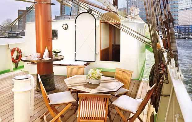Und Ihr habt die Möglichkeit dieses besondere Ereignis aus einer ganz speziellen Perspektive zu beobachten. An Bord des Dreimastschoners habt Ihr einen phantastischen Ausblick auf Wasser und Land und könnt Euch dabei den frischen Wind um die Nase pfeifen lassen. Da Seeluft ja bekanntlich hungrig macht, ist auch für Euer leibliches Wohl gesorgt. Die Service-Crew verwöhnt Euch mit einem köstlichen Brunchbuffet, das keine Wünsche offen lässt. Auch ein Glas Prosecco wird Euch bei diesem Segeltörn gereicht, das die Zeit auf dem Wasser perfekt abrundet, bevor es wieder zum Travemünder Hafen geht, wo Ihr die Entdeckungstour der Travemünder Woche auf dem Land fortsetzen könnt.