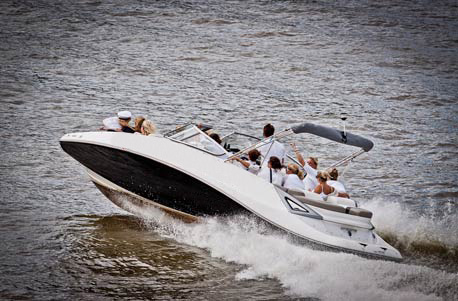 Beim Speedboot fahren in Frankfurt am Main erwartet Dich wahrlich ein Event der Extraklasse. Spätestens, wenn Du mit Highspeed über die Wasseroberfläche gepeitscht wirst, die Fliehkräfte auf Dich einwirken und Dein Adrenalinspiegel in die Höhe schießt, wird das breite Grinsen auf Deinem Gesicht nicht mehr weichen wollen! Das Partyboot ist eines der schnellsten Serienboote am Markt und somit ein Modell der Supersportklasse – mal ganz abgesehen von seinem edlen und schnittigen Design. Brachiale Beschleunigungskraft, überraschende Wendigkeit und Spitzengeschwindigkeiten bis 100 Stundenkilometer sind nur einige der Schlagworte, die hier unbedingt genannt werden wollen. Selbstverständlich kannst Du auch ein paar Freunde mit zu Deiner feuchtfröhlichen Spritztour nehmen – bis zu elf Personen finden Platz in dem geräumigen Schnellboot. Auch für gesellige Events wie Geburtstage, Junggesellenabschiede oder Jubiläen ist dieses Event also eine wunderbare Wahl. Abhängig vom Anlass kannst Du mit dem Skipper das angemessene Rahmenprogramm besprechen. Mit einer kraftvollen Musikanlage, Becherhaltern, ausreichend Stauraum und eleganten Ledersitzen findest Du hier für verschiedenste Anlässe eine exzeptionelle Location.