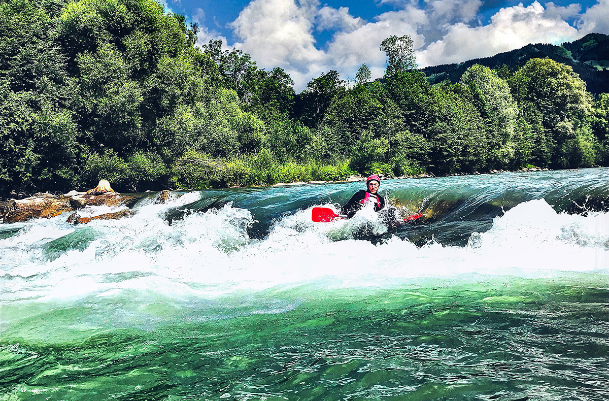 Auf einem Reifen den Wildbach hinunter