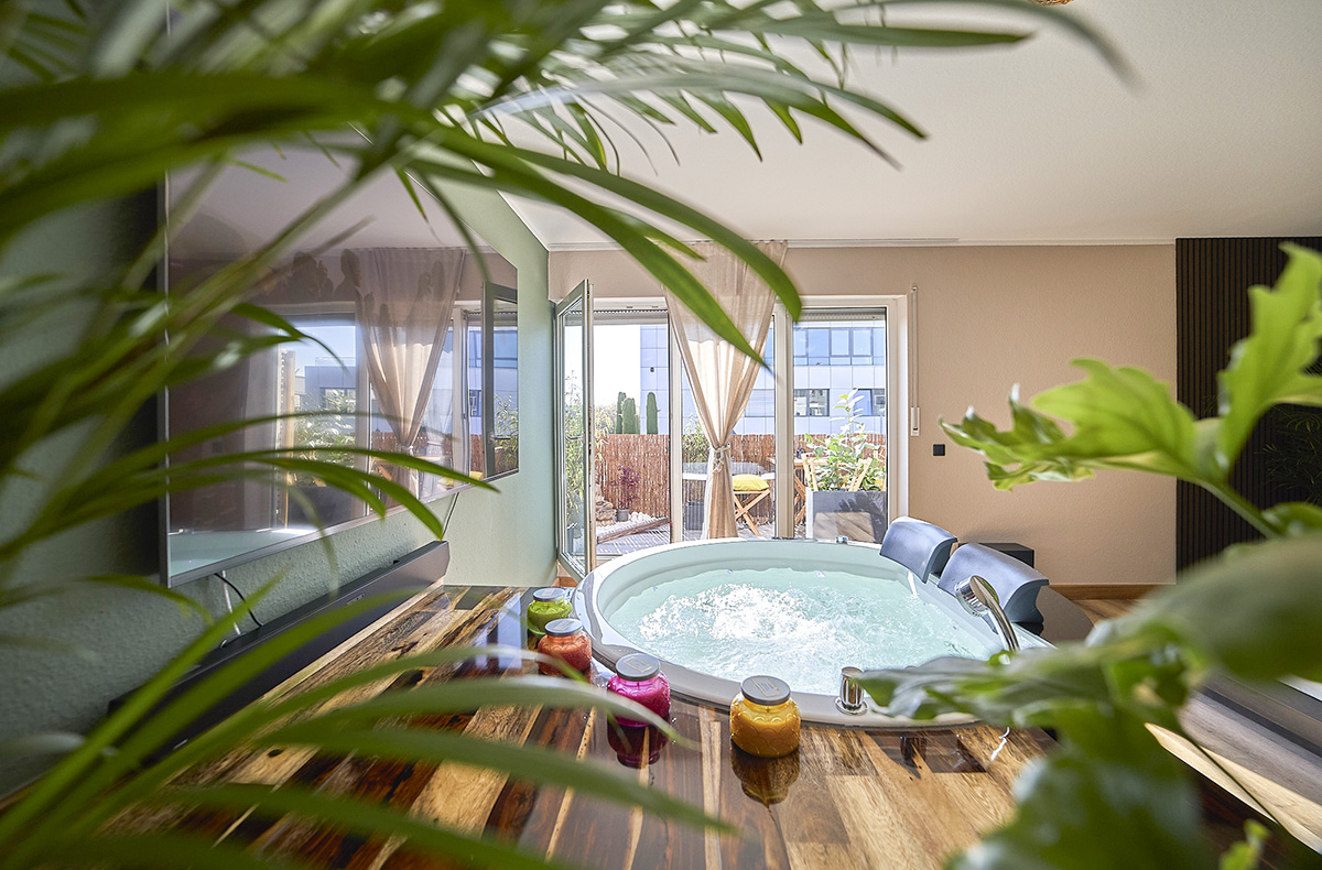 • Wellness Apartment mit Whirlpool, finnischer Sauna, ausgestatteter Küche, u.v.m.