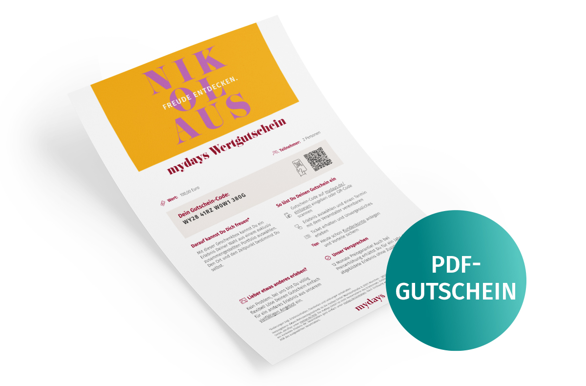 Klicke dich durch die Erlebniswelt von mydays bei www.mydays.at/einloesen und wähle dein Lieblingserlebnis aus.