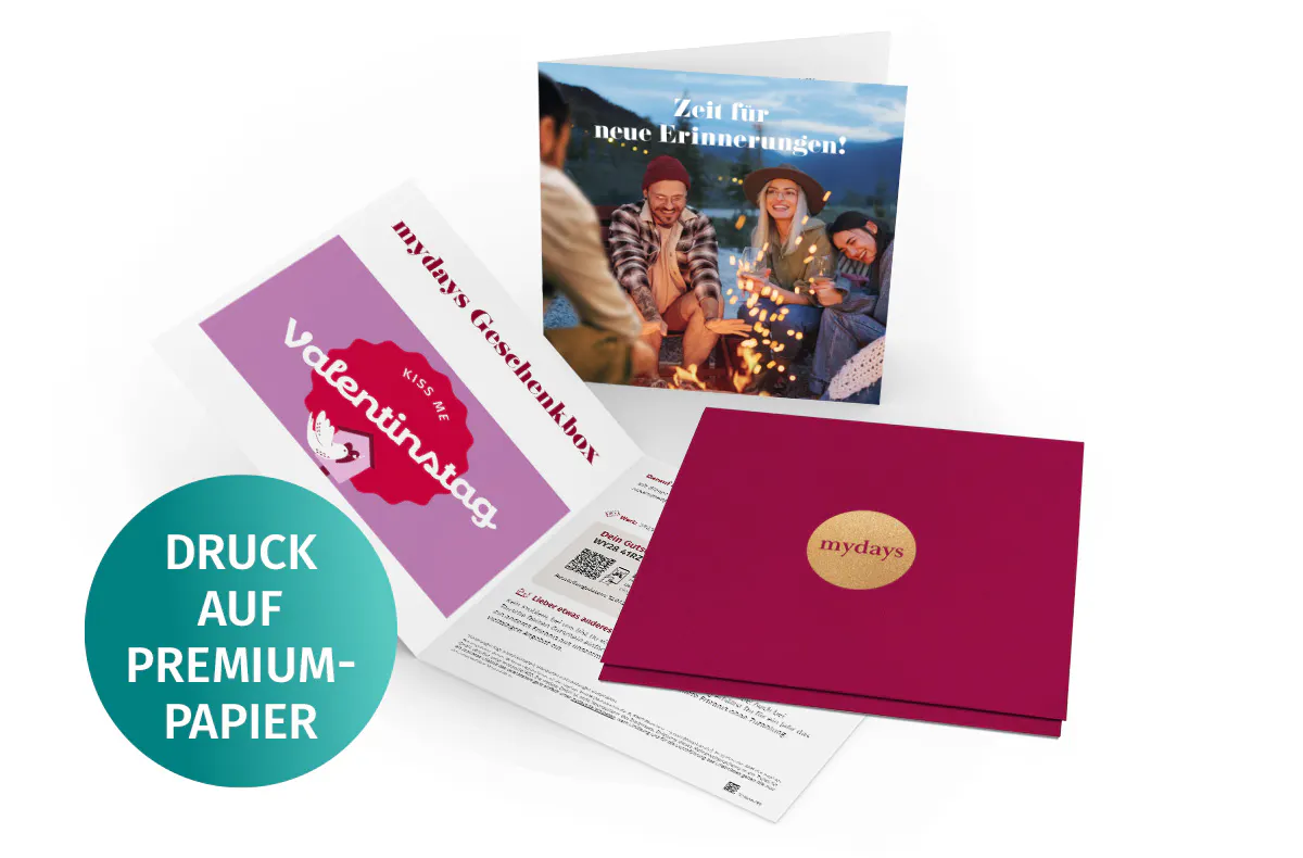 mydays GutscheinFlexibles Geschenk Valentinstag (Kiss Me)Flexibel einlösbarGutscheinbetrag20,00 €40,00 €50,00 €60,00 €80,00 €100,00 €120,00 €140,00 €150,00 €160,00 €180,00 €200,00 €250,00 €300,00 €350,00 €400,00 €500,00 €